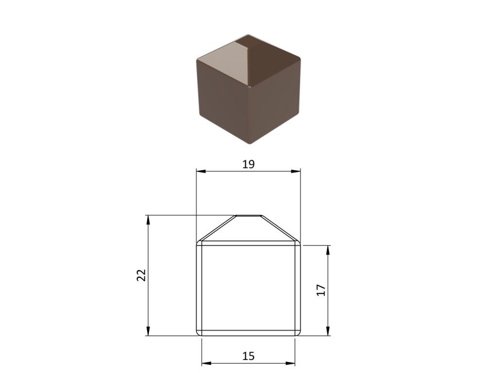 Vonkajšia krytka 15 x 15 mm, plastová PE, hnedá