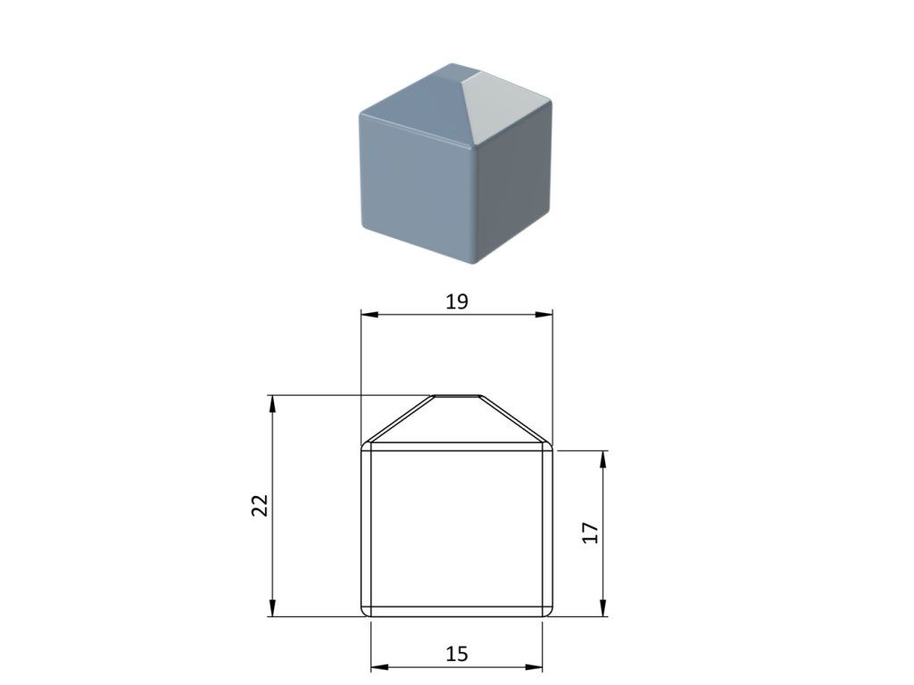 Vonkajšia krytka 15 x 15 mm, plastová PE, sivá