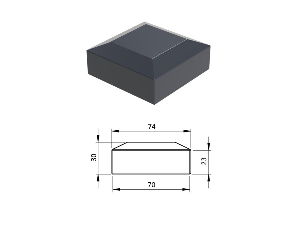 Vonkajšia krytka 70 x 70 mm, plastová PE, antracit