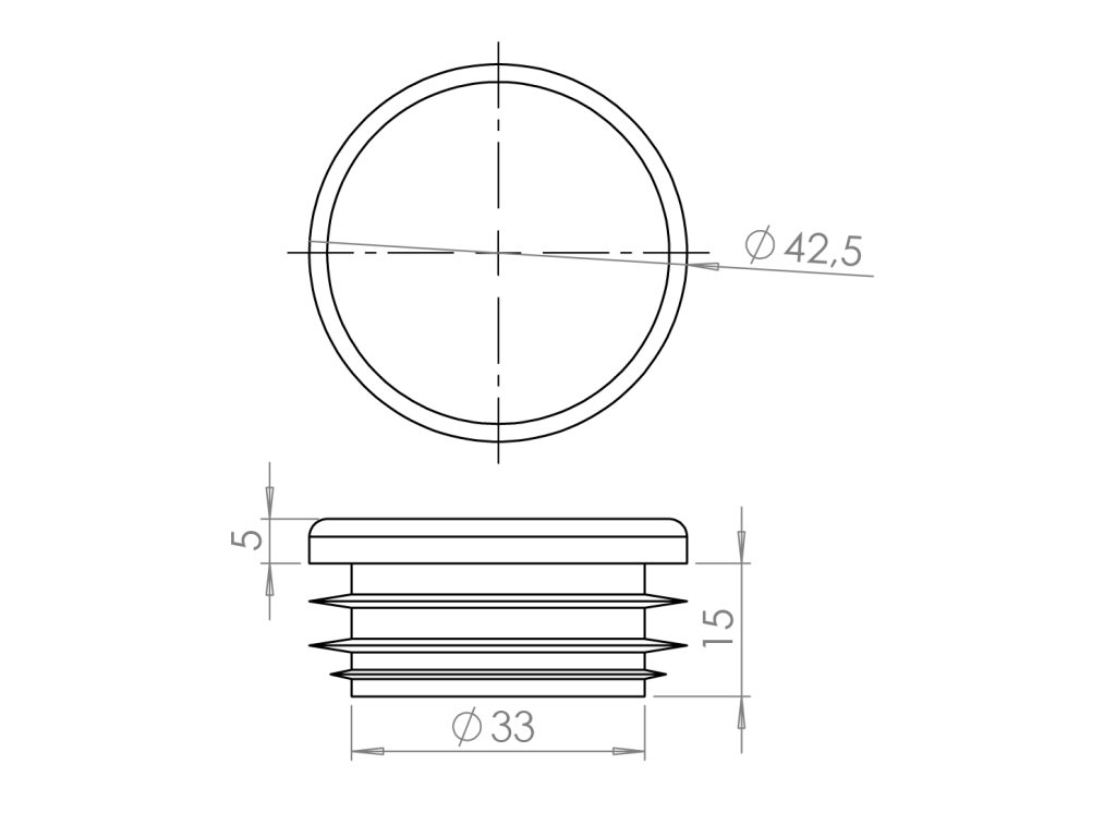 vnútorná krytka guľatá D-42mm plastová, šedá