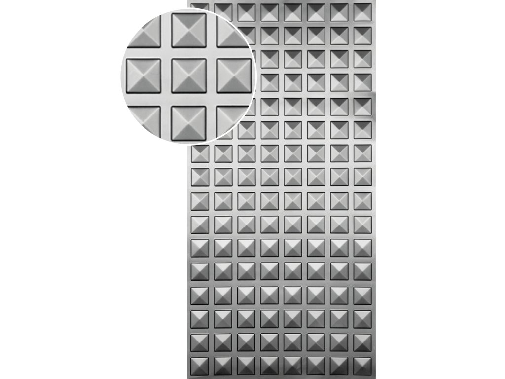 Plech oceľový pozinkovaný DX51D, rozmer 2000x1000x1,2mm +/- 0.5%, lisovaný vzor - ŠTVOREC 95x95mm, 3D efekt