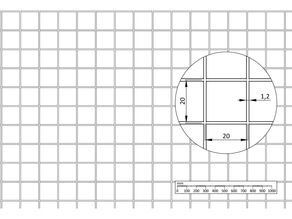 Zvárané sito, oko: 20 x 20 mm, hrúbka: 1,2 mm, AISI 304