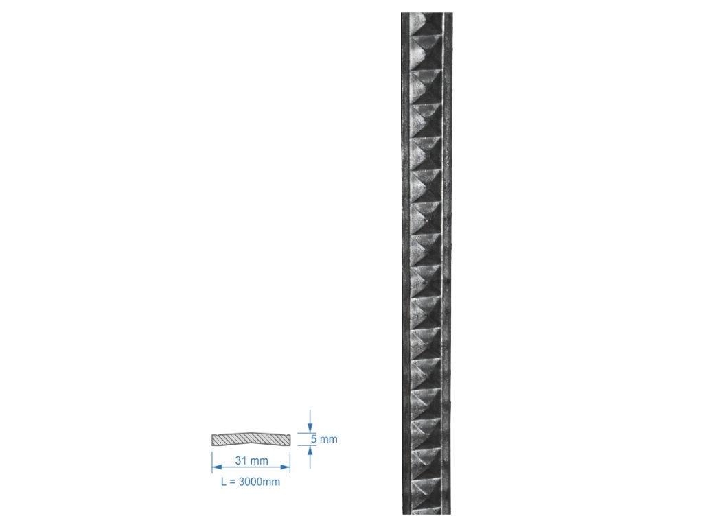 plochá tyč vzorovaná 31x9mm, L-3000mm, cena za 1m