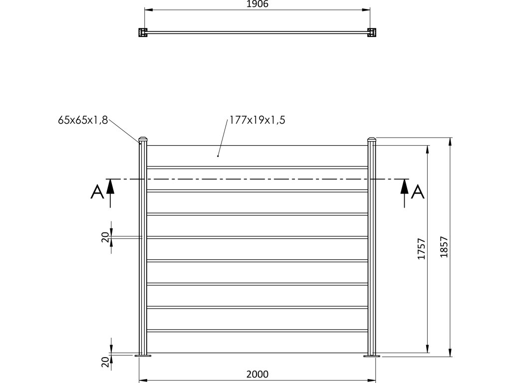 - sloupek s drážkami: 65 x 65 x 1,8 mm