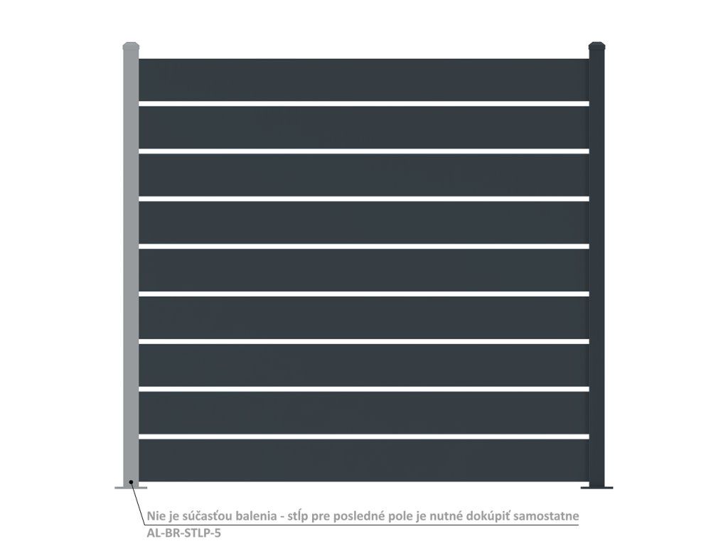 Hliníkový plotový diel určený pre moderné oplotenie rodinných domov, bytových a rezidenčných projektov aj firemných areálov. Plotový diel je vyrobený z kvalitnej hliníkovej zliatiny 6063-T5, ktorá je štandardom pre exteriérové systémy vďaka svojej pevnosti, tvarovej stabilite a vysokej odolnosti voči korózii.