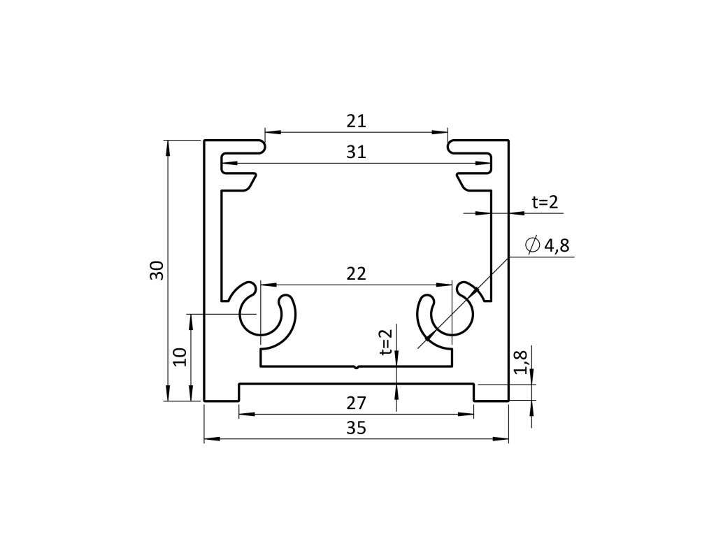 Hliníkový montážny profil AL-PM3530-6 je primárne určený na realizácie plotových výplní na murované ploty.