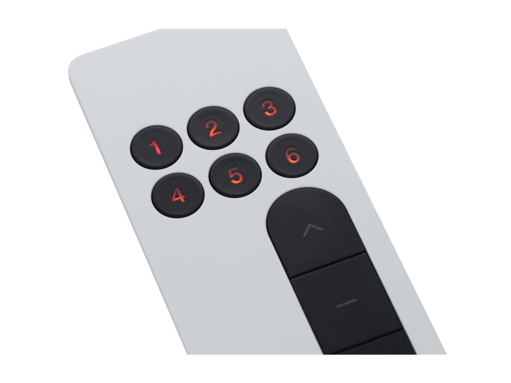 Objavte Domi P6, elegantný 6kanálový ručný rádiový vysielač, ktorý vám umožní pohodlne riadiť až 6 skupín automatizácie – jednotlivo, v skupinách alebo v multiskupinovom režime.