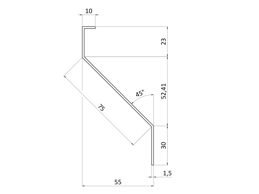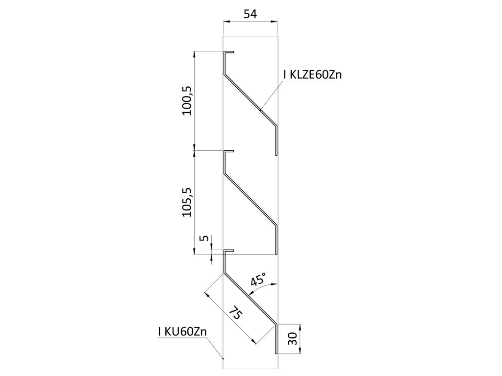 Z-profil lamela 23 x 75 x 30 x 1,5 x 3000 mm, pozink