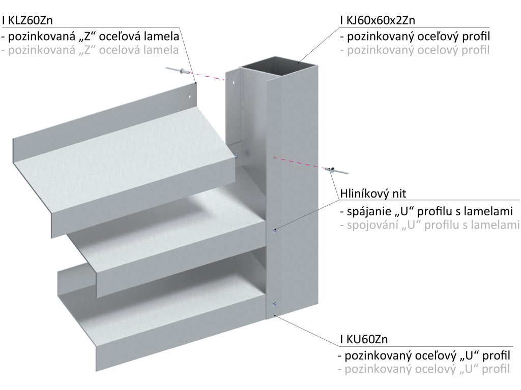 Z profil lamela L-2000 mm, 27x46x27x1,5 mm, pozinkovaný plech, použitie pre plotovú výplň, možnosť použiť s KU60Zn, cena za 2-metrový kus