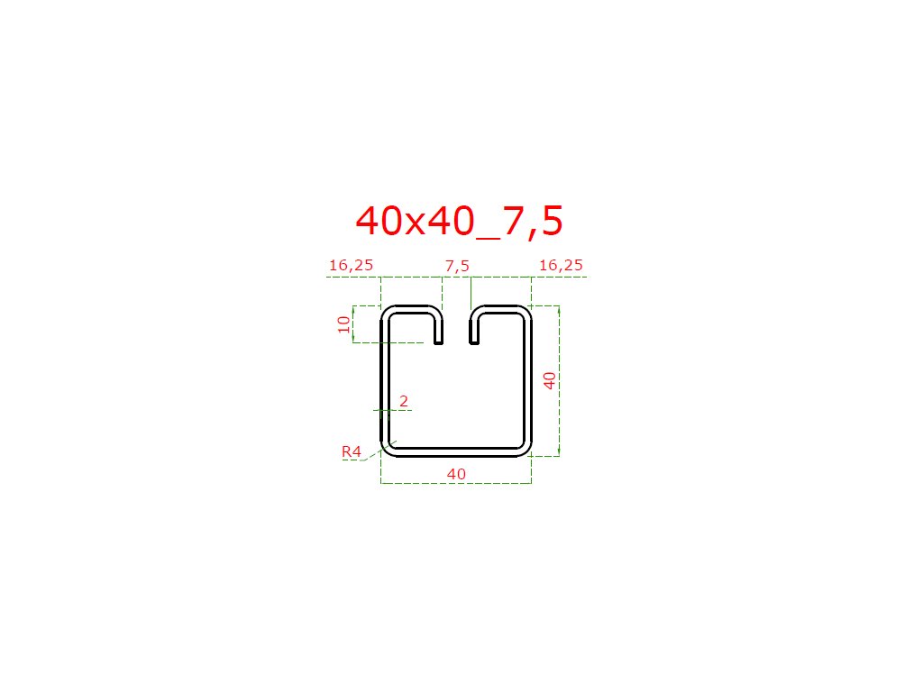 Pozinkovaný profil U 40 x 40 x 6000 mm, s drážkou 7,5 mm
