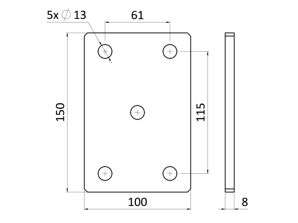 Platňa 100 x 150 x 8 mm s otvormi ø 13 mm, bez úpravy