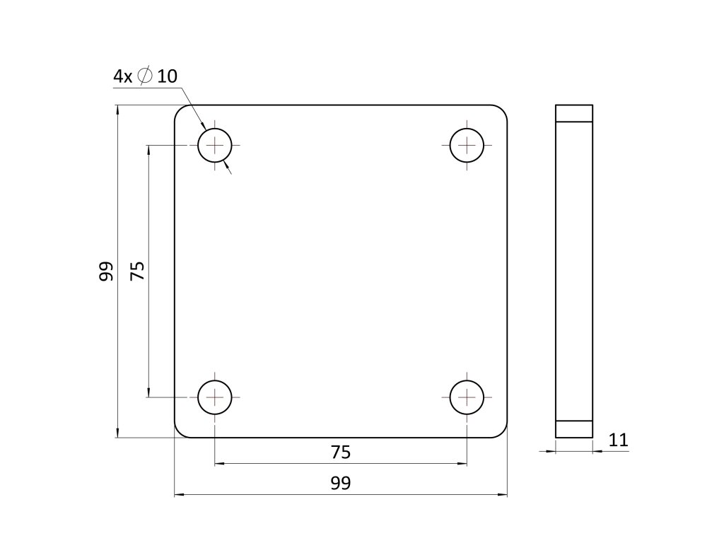 Platňa univerzálna 99 x 99 x 11 mm, bez povrchovej úpravy