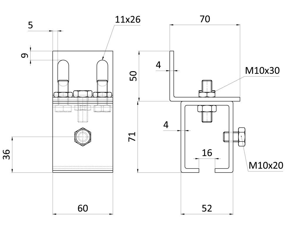 Držiak od KVN gate systems. Povrchová úprava- pozink. Použitie pre uchytenie vodiacej listy C920M.