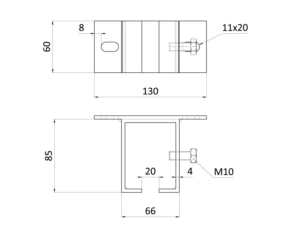 Držiak KVN gate systems. Povrchová úprava- pozink. Použitie pre uchytenie vodiacej lišty C920G.