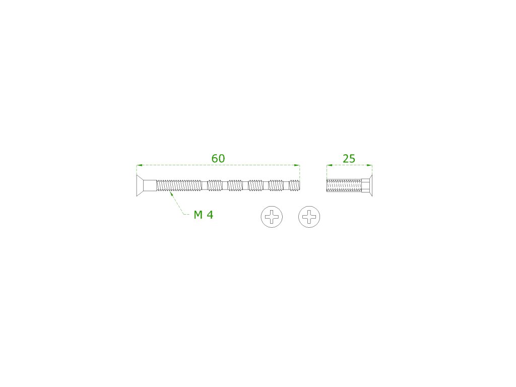 Skrutka na montáž kLučky ø 4 x 60 mm, pochrómovaná oceľ