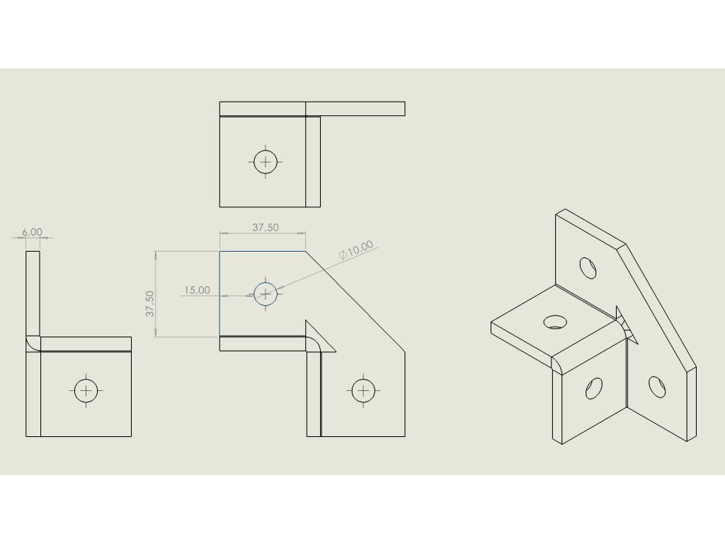 Montážne uhly sa používajú na spojenie upevňovacích líšt a konzolových ramien v rohoch. Na pripojenie montážneho uhla k upevňovacej lište alebo konzolovému ramenu je potrebné použiť metrický skrutku, podložku a posuvnú maticu pre upevňovaciu lištu.