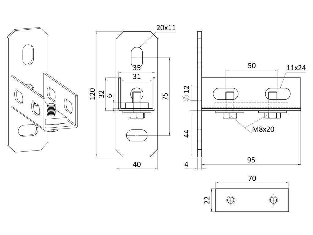 - Presné 90° uchytenie: Zaručuje presné a pevné spojenie nosníkov v kolmých uhloch pre maximálnu stabilitu konštrukcie.