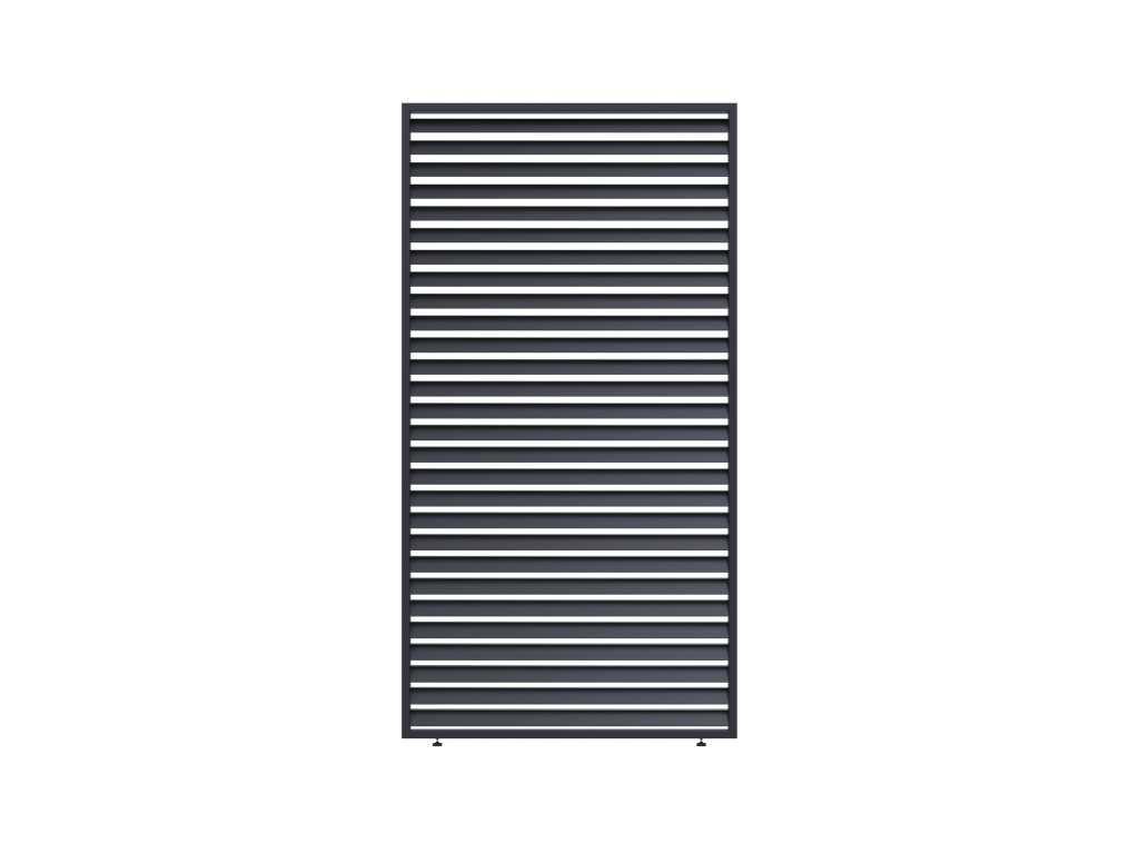 Pre zvýšenie komfortu a súkromia ponúkame doplnkový panel s horizontálnymi fixnými lamelami, určený na bočné alebo čelné zatienenie bioklimatických pergol. Tento panel zaisťuje nielen funkčnú ochranu pred slnkom či vetrom, ale zároveň dotvára moderný vzhľad celého exteriéru.