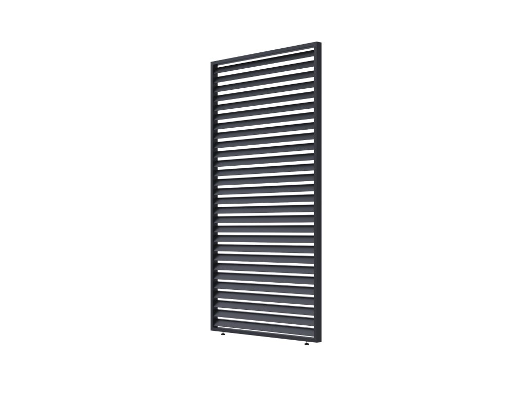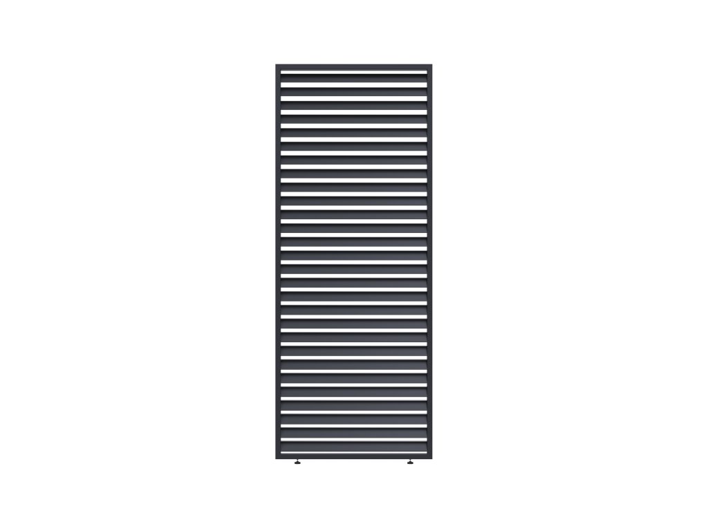 Zatieňovací panel s horizontálnymi fixnými lamelami je praktickým a dizajnovým doplnkom k bioklimatickým pergolám. Umožňuje vytvoriť väčšie súkromie, zabezpečiť ochranu pred slnkom a vetrom a zároveň zachovať elegantný vzhľad vášho exteriéru.