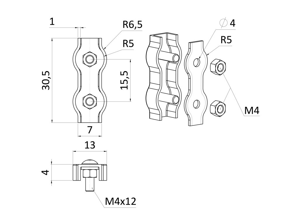 Lanková svorka, duplex pre lanko ø 2 mm, brúsená AISI 304