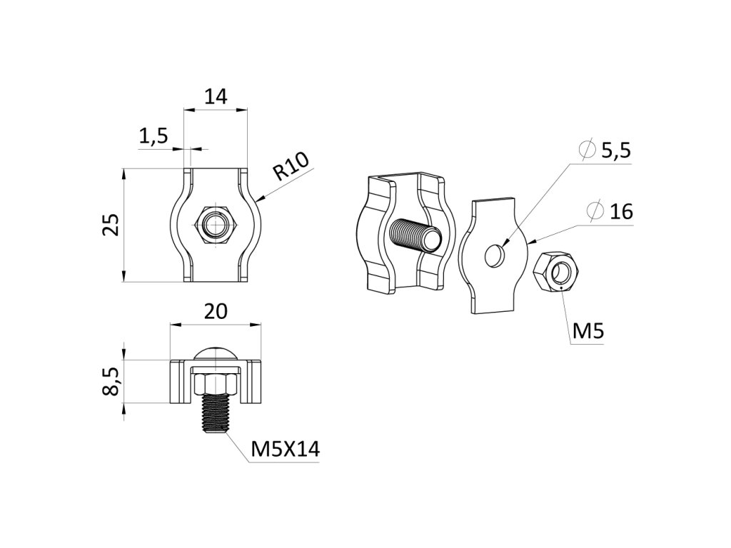 Lanková svorka, simplex pre lanko ø 5 mm, brúsená AISI 304