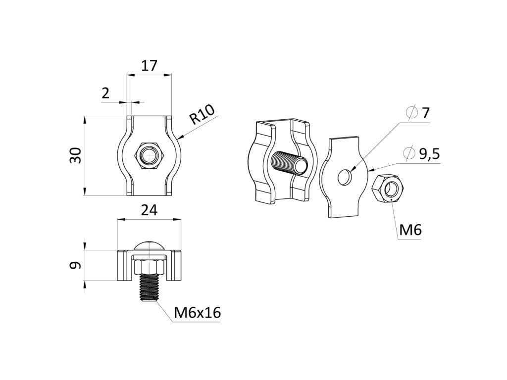 Lanková svorka, simplex pre lanko ø 6 mm, brúsená AISI 304