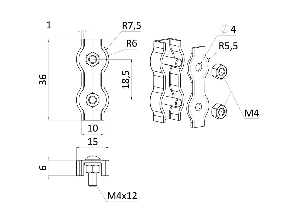 Lanková svorka - dvojitá (duplex) pre nerezové lanko 3mm, brúsená nerez K320/ AISI304