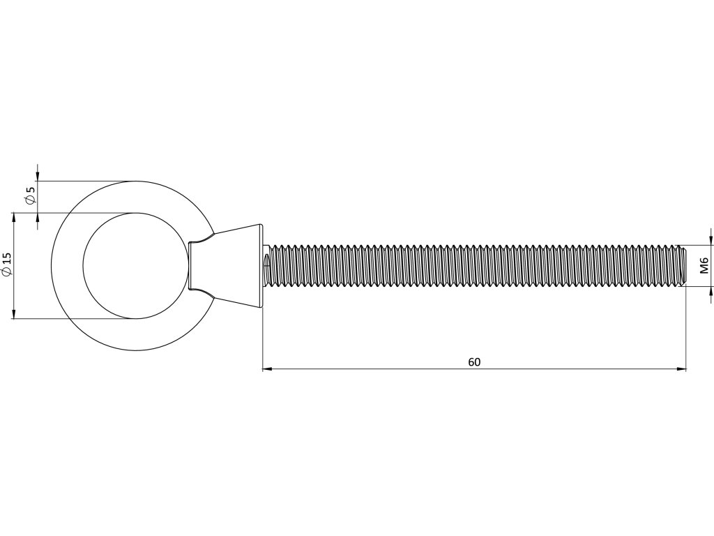 Skrutka s okom a metrickým závitom, M6 x 60 mm, A4/AISI 316
