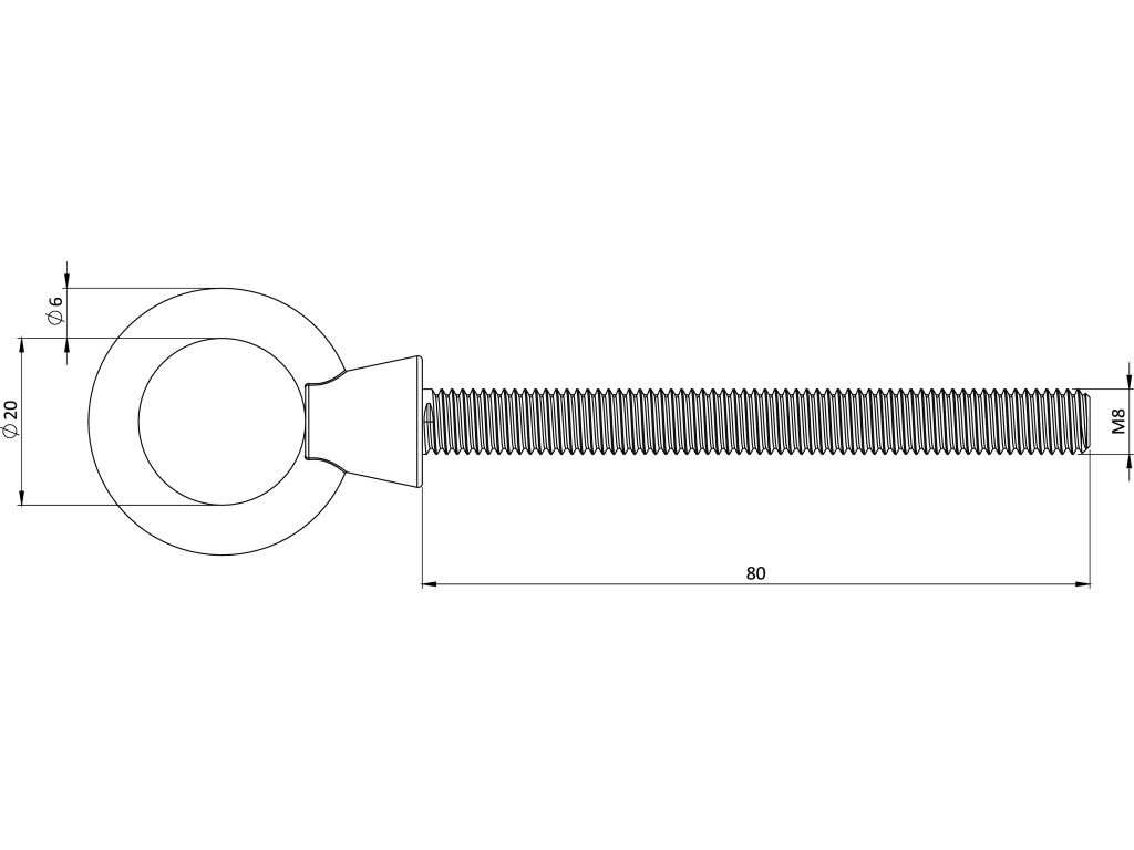 Skrutka s okom a metrickým závitom, M8x80, Art.8267 A4/AISI316