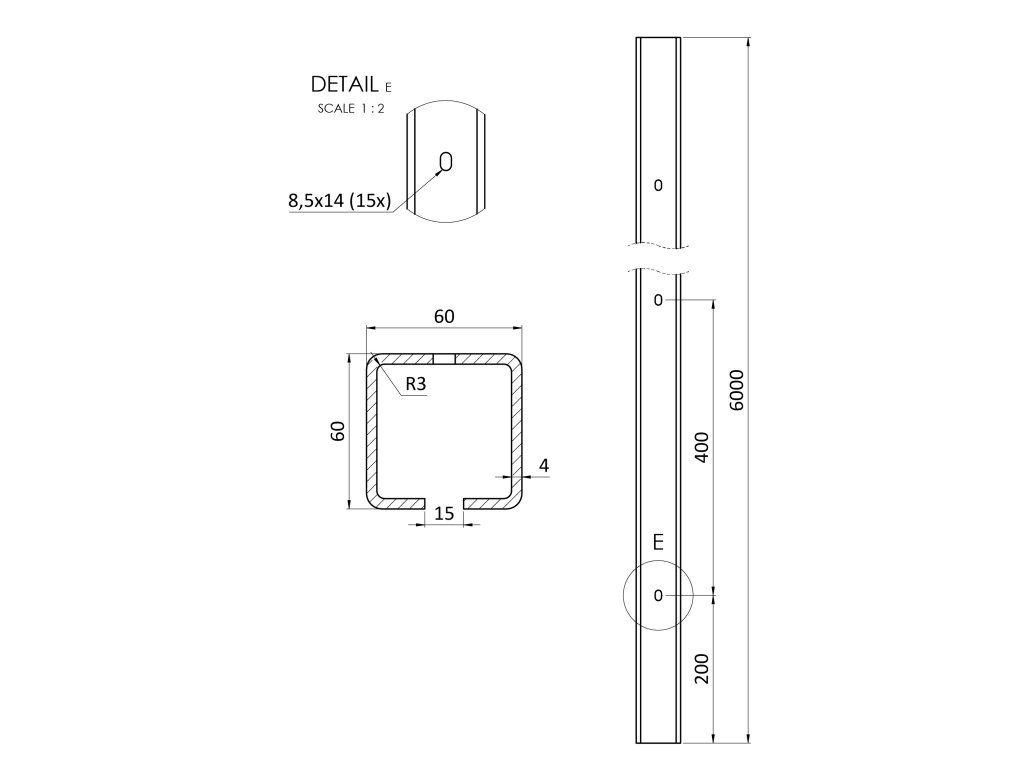 C profil 60 x 60 x 4 x 2000 mm s otvormi, pozinkovaný