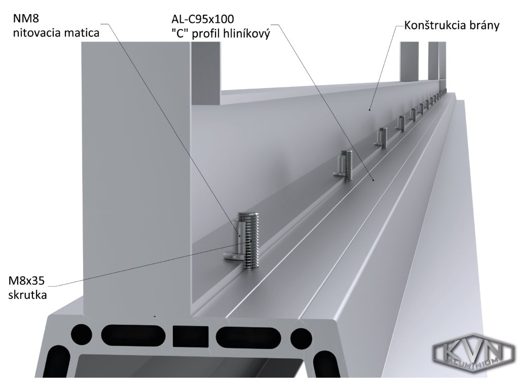 Hliníkový samonosný C profil je navrhnutý tak, aby jeho parametre spĺňali vysoké nároky na kvalitu brán. Jeho využitie je pre hliníkové brány s dĺžkou prejazdu max. 6,5 m a hmotnosťou max.150 kg.