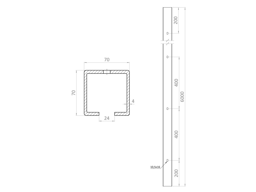 C profil 70 x 70 x 4 x 4000 mm s otvormi, pozinkovaný