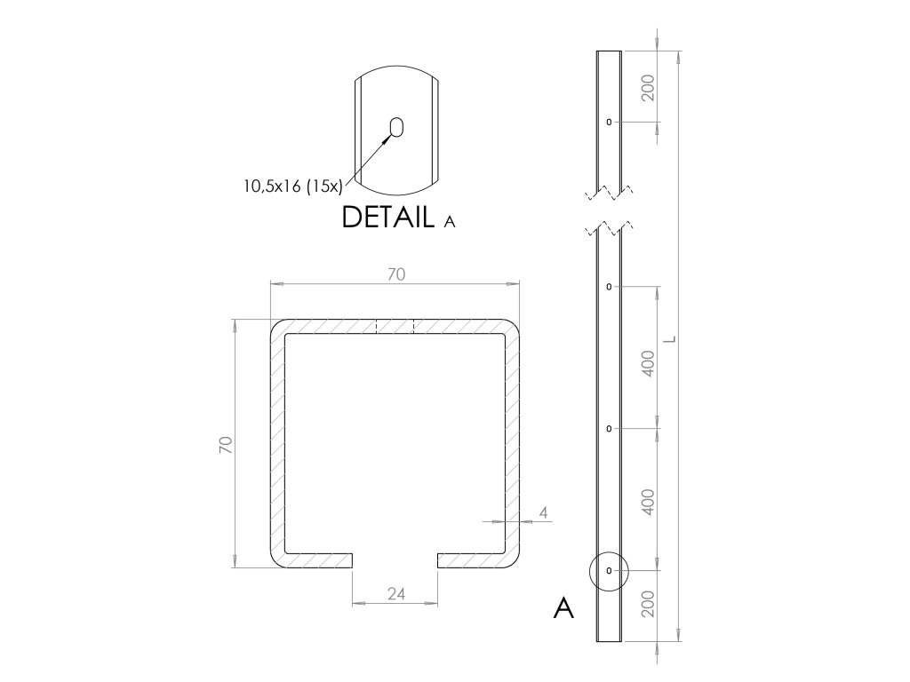 C profil 70 x 70 x 4 x 7000 mm s otvormi, pozinkovaný