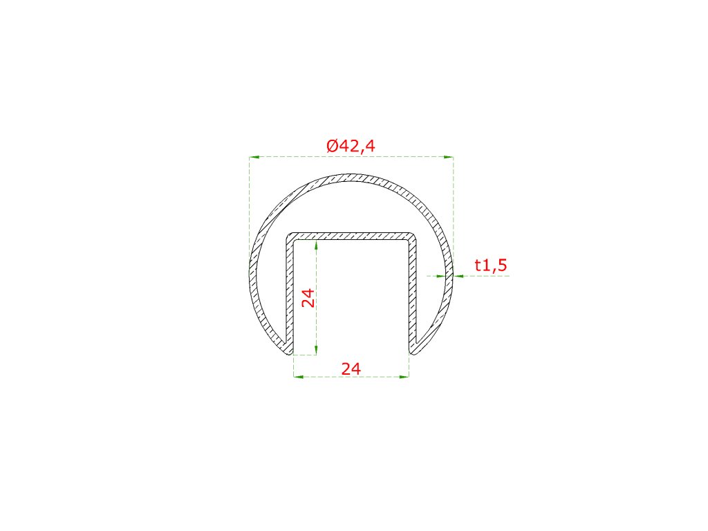 Madlo ø 42,4 x 2000 mm, sklo 8 - 17,5 mm, brúsená AISI 304