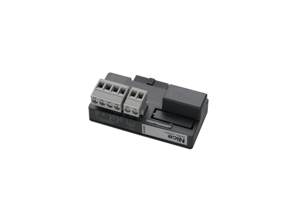 Konkrétne karta MLAE21 je vybavená 2 dodatočnými beznapäťovými vstupmi a 1 výstupom (10 W, 24 V – 0,4 A).