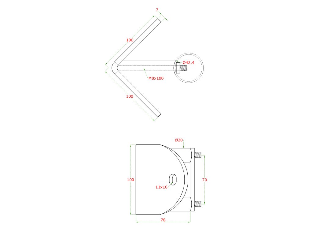 úchyt na vnútorné rohové kotvenie stĺpu ø 42.4mm, (kotviaca platňa hrúbky 7mm, ø 100), brúsená nerez K320 /AISI304