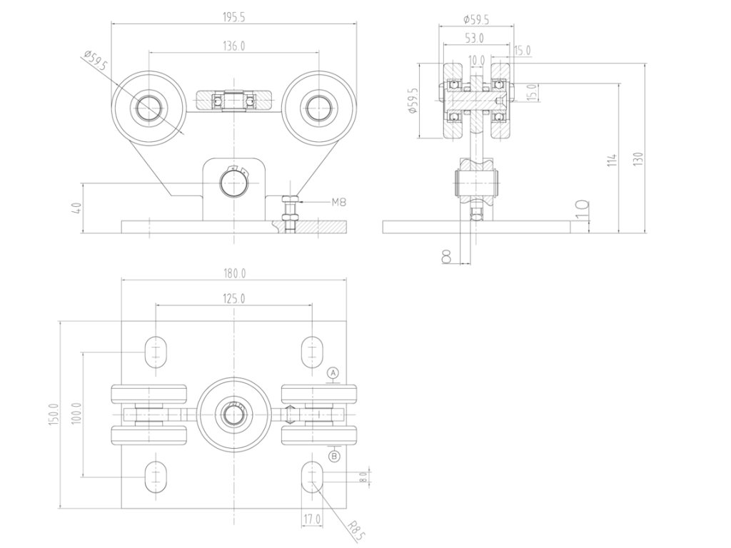 PICCOLO INOX (68 x 68 mm) nerezový samonosný systém pre posuvné brány do 300 kg/ otvor: 4,5 m, nerez AISI 304 bez povrch. úpravy