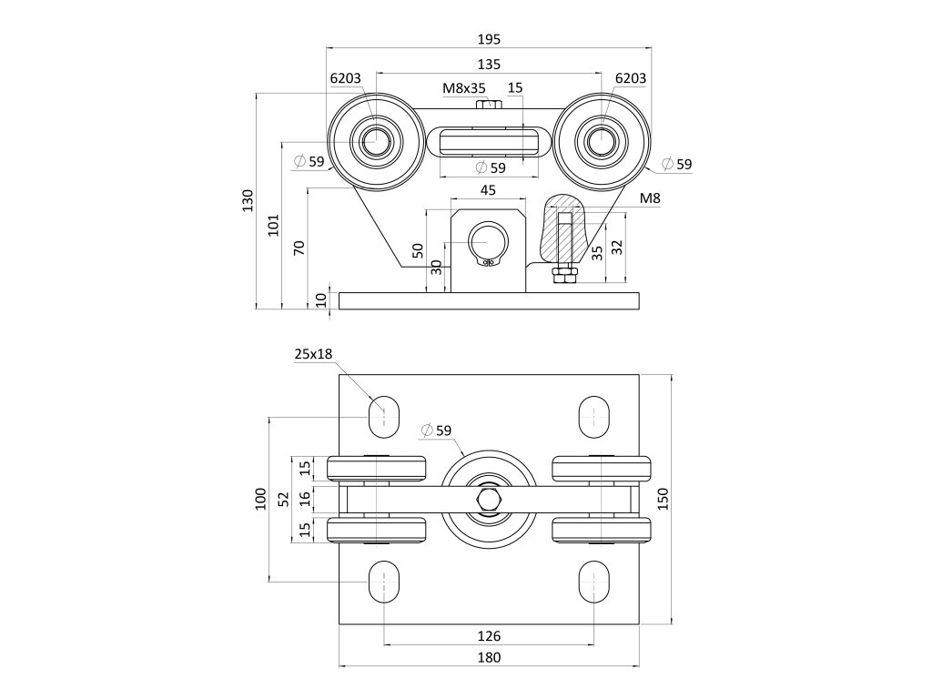Vozík PICCOLO (67x67mm) pre brány do 300 kg/4,5 m, AISI 304