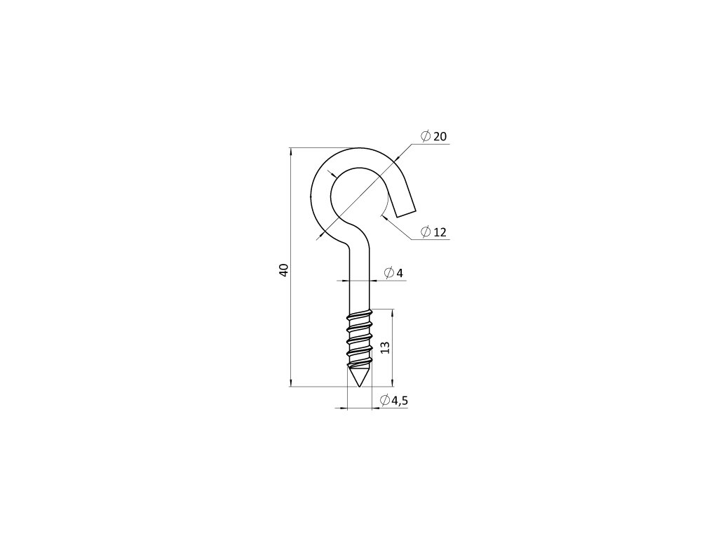 Nerezová skrutka 4 x 40 mm s hákom do dreva, AISI 304