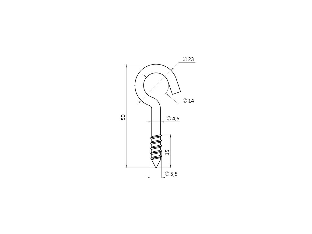 Nerezová skrutka s hákom, závit do dreva, AISI304, 4.5x50