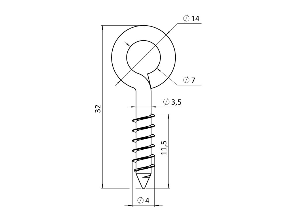 Nerezová skrutka s okom, závit do dreva, AISI304, 3.5x25
