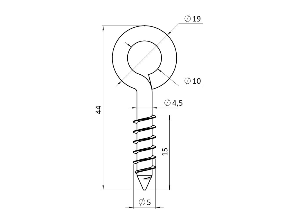 Nerezová skrutka s okom do dreva, AISI 304, 4,5 x 35 mm