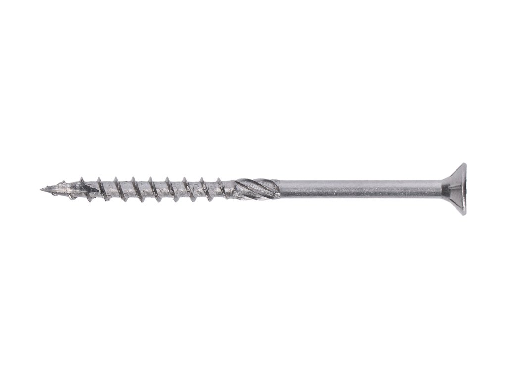 Naše terasové skrutky sú ideálne na upevnenie vonkajších lavíc z tvrdého dreva bez stresu a trvanlivým spôsobom, fasád z tvrdého dreva, vonkajších a vnútorných drevených schodov. Materiál skrutky je odolný voči vplyvom prostredia, nekoroduje a nezanecháva škvrny na dreve. So samorezným hrotom je vŕtanie podstatne jednoduchšie a rýchlejšie ako v prípade produktov s tradičným hrotom a závitom. Rebrá pod hlavou skrutky sú určené na ľahké zapustenie či už ide o tvrdé alebo mäkké drevo. Niekde ich viete nájsť aj pod názvom nerezová drevená skrutka
