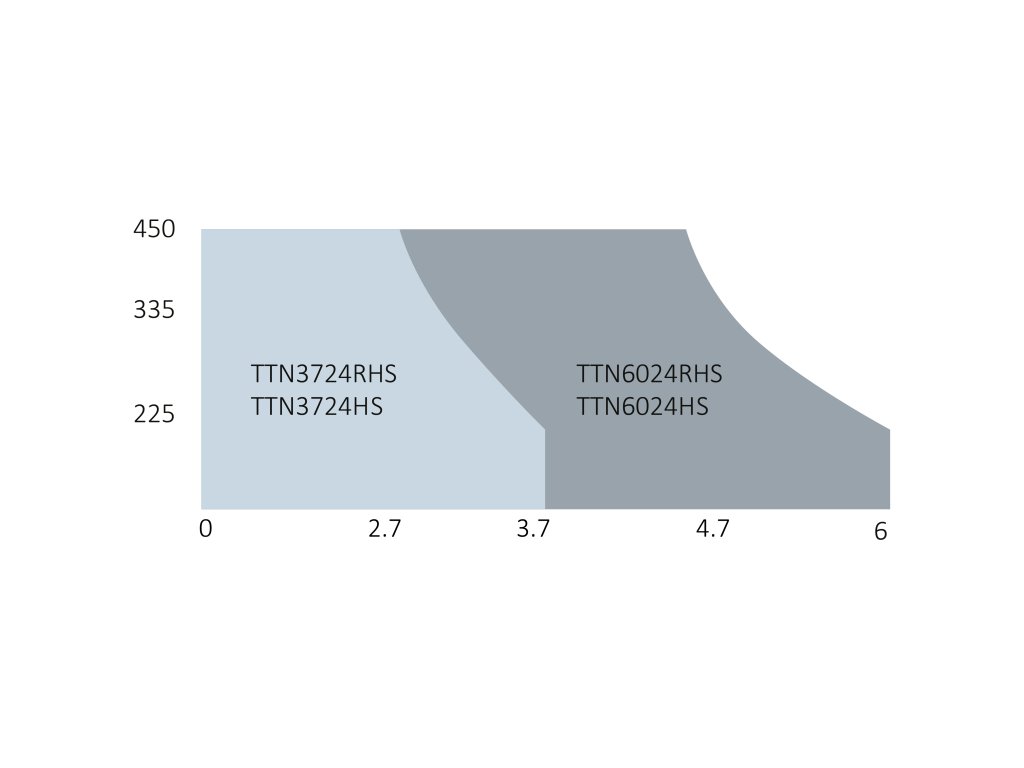 Garantuje rýchosť manévru: otvorenie na 90° približne za 12* sekúnd (verzie TTN3724HS a TTN3724RHS) alebo 19* sekúnd (verzie TTN6024HS a TTN6024RHS)