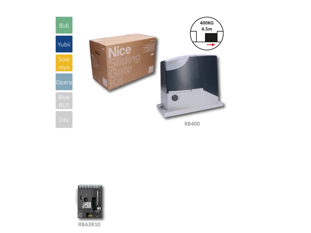 RB400 pohon pre posuvnú bránu do 400kg bez prijímača, 1x RB400 (24V, 250W, 400N), 1x RBA3R10