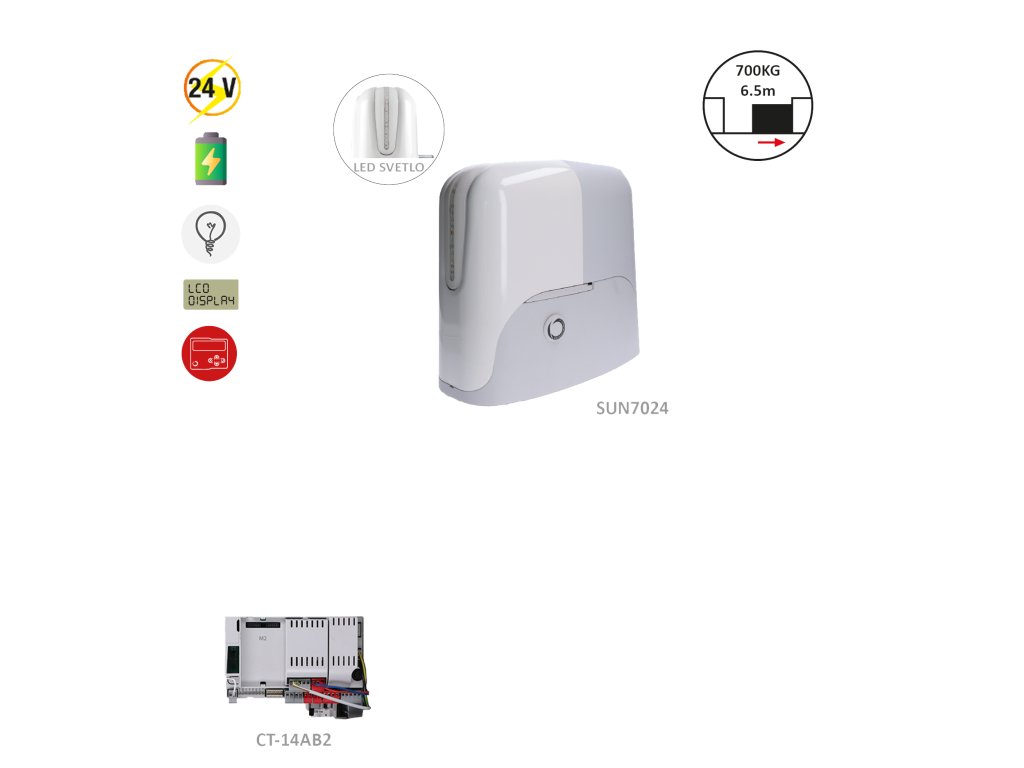 SUN7024 pohon pre posuvnú bánu do 700kg, 1x SUN7024 (24V, 345W, 26Nm), 1x CT-14A
