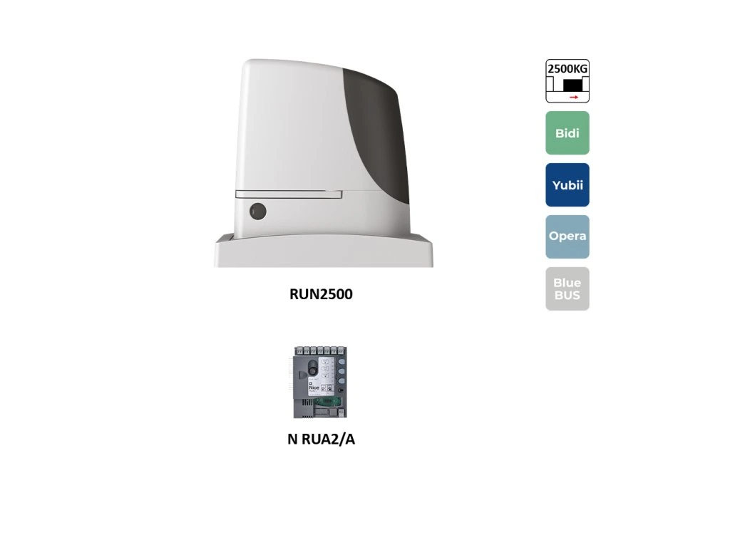 RUN2500I je pohon pre posuvné brány s hmotnosťou do 2500 kg, ideálny pre náročné podmienky a intenzívnu prevádzku. Vyniká jednoduchou montážou, vysokou bezpečnosťou, pokročilými technológiami a praktickými funkciami.