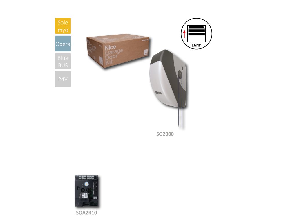 SOON - pohon na garážovú bránu do 16m2, 1x SO2000, 1x riadiaca jednotka SOA2 (neobsahuje OXIBD)
