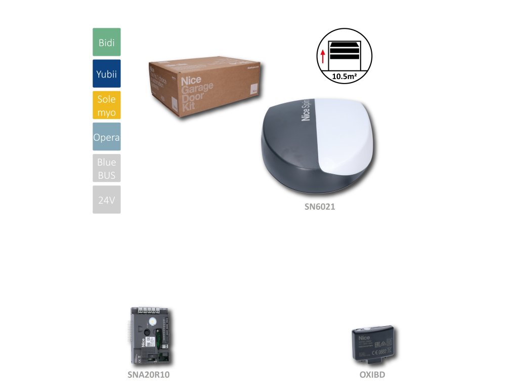 Pohon Nice Spinbus SN6021 je moderné a výkonné riešenie pre automatizáciu sekčných a výklopných garážových brán do 10,5 m² (sekčné) a 11,8 m² (výklopné). S technológiou BlueBUS umožňuje jednoduché pripojenie príslušenstva pomocou iba dvoch vodičov. Výhodou je tiež záložná batéria pre prípad výpadku elektriny a tichý chod. Vďaka kompaktnému dizajnu a úspore energie je ideálny pre domáce použitie.