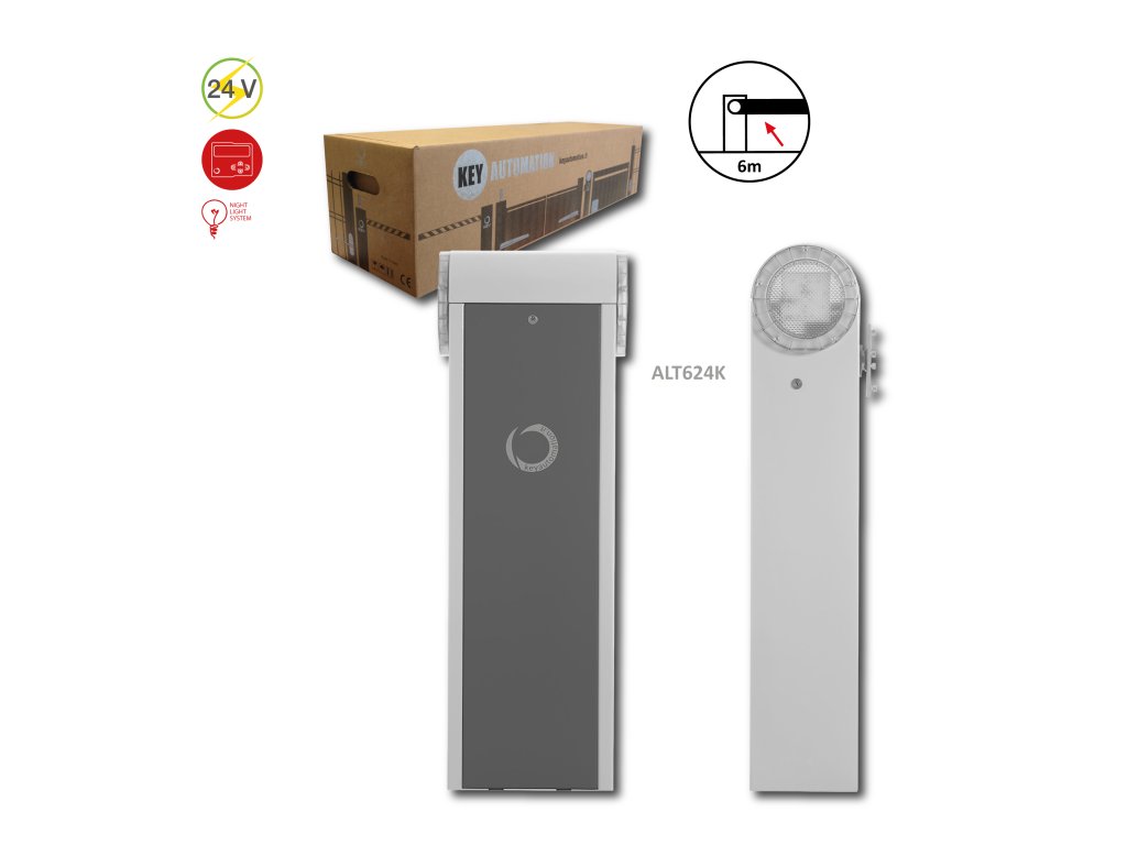 900ALT624K závora do 6m, 24V,300W, 1xCT-10224, bez ramena, model so zabudovaným majákom, šedá farba